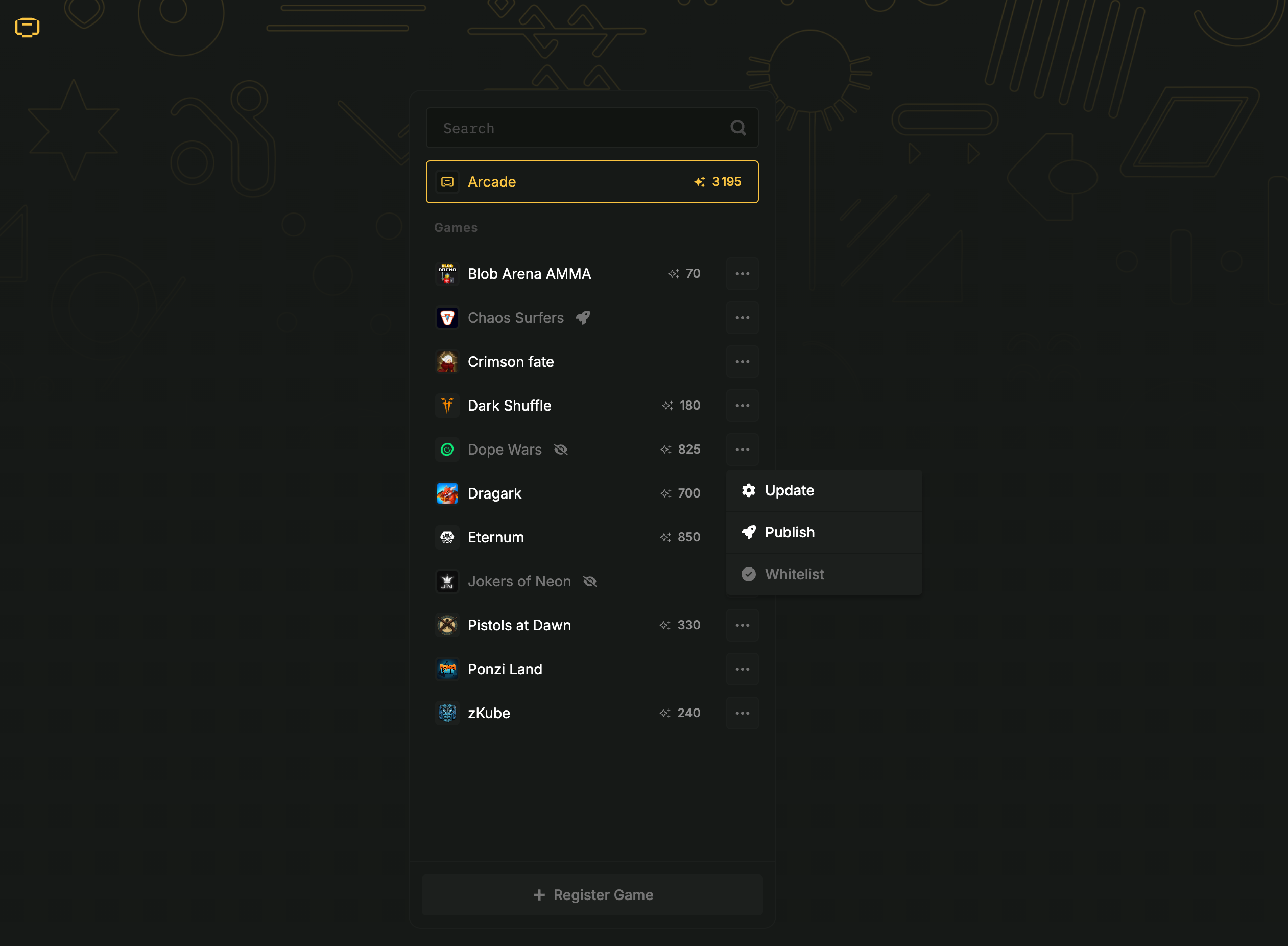 • A permissionless platform for game registration and publishing